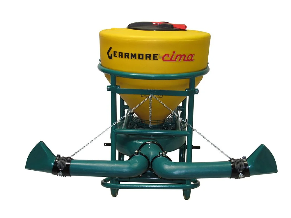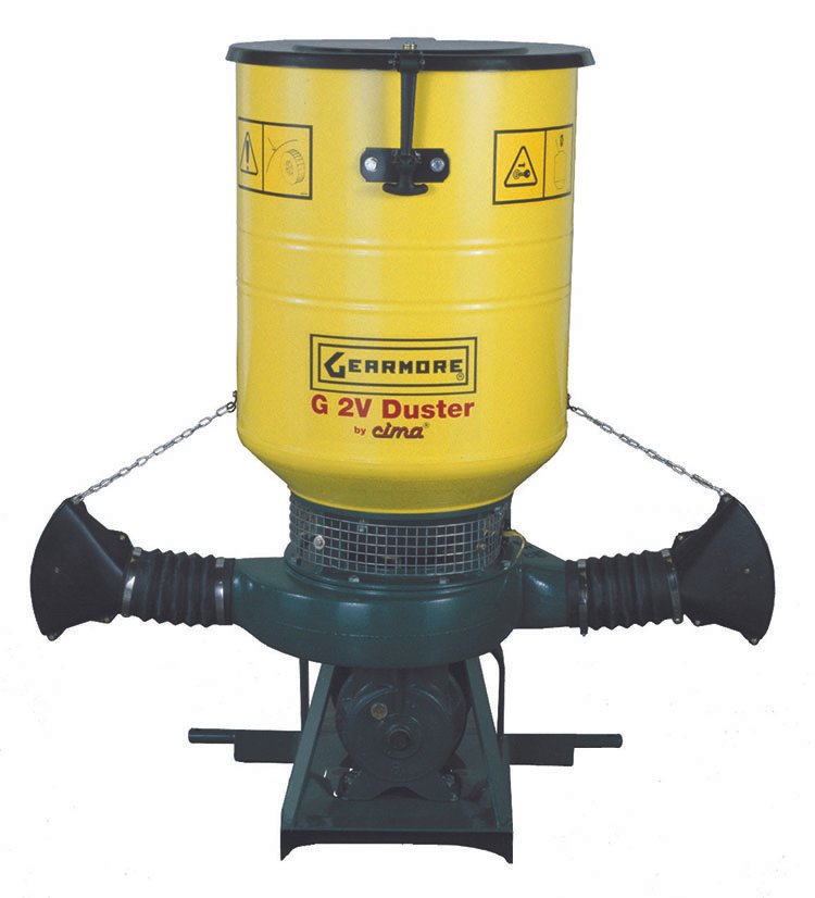 We offer the Gearmore line of 3-point sulfur dusters. All units feed sulfur thru the rotational agitator directly into the blower fan. It is evenly spread between the two fishtail outlets sulfuring two complete rows with one pass. There are three sizes to fit any vineyard need.