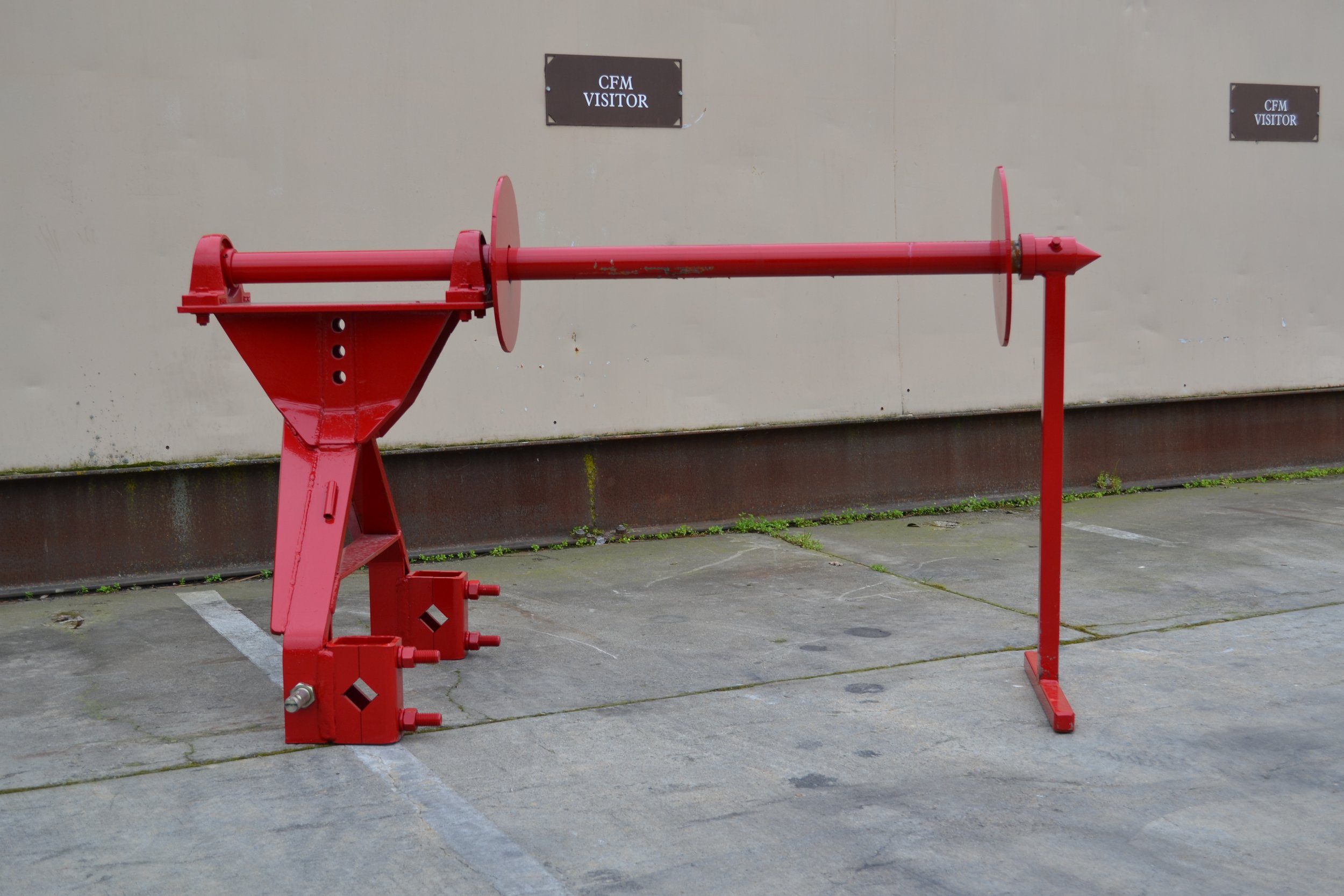 The hose roll out is a three point unit and takes the larger spools of drip hose. Simply back up the tractor, pick up the hose from the center pivot, and lift. The operation is simple: Workers on ATVs will grab the end of the hose from the tractor parked at the end of a row, and pull down the row. Once he is down the row completely and on his way back, the spool operator cuts the hose and forwards the tractor. Many acres per day can be done in this way.