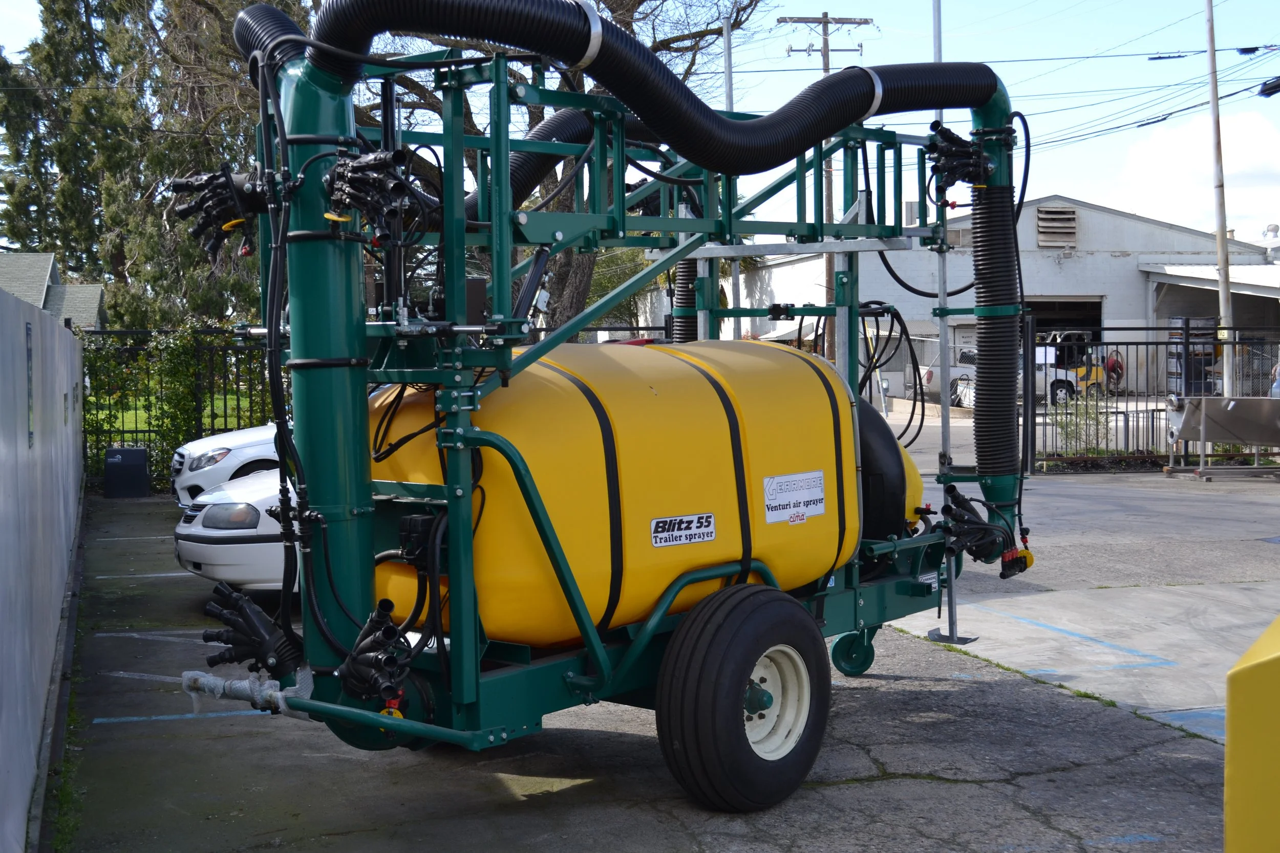Acampo Machine Works offers the Gearmore venturi sprayer. With a choice of a 300 or 500 gallon tank, this sprayer is a standard with vineyard operators. We normally set them up with booms capable of spraying two or three complete rows. Rates will run anywhere from 25 to 50 gallons per acre.